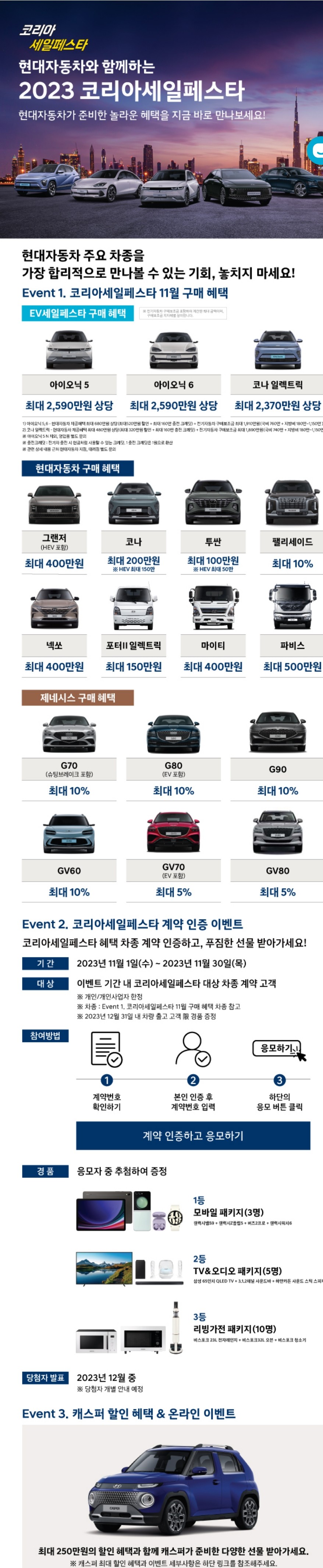 | 기아자동차 코리아 세일 페스타 (2023. 11월 한달) (0) | 2023.11.18 |